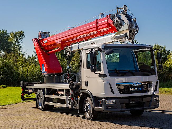 Dźwig dekarski Böcker AK 37/4000 PLC wyznacza nowe standardy wśród dźwigów samochodowych do 7,49 tony masy całkowitej pojazdu. Dźwig ten posiada maksymalną ładowność do 4 ton oraz długości wysuwu do 37 m, dzięki czemu nadaje się doskonale do wykonywania zadań podczas codziennej pracy na budowie.