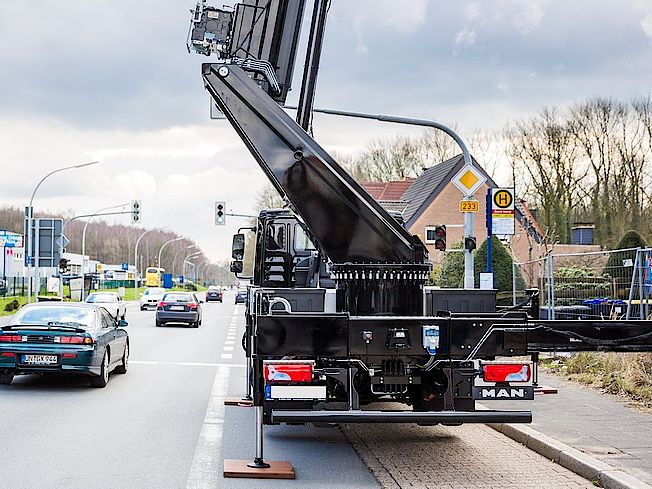 Ze względu na swój wyjątkowy wysięg, dźwig łatwo unosi obciążenia aż do tylnej części dachu. Wyrafinowany PLC Control zapewnia, że nawet ogromne ładunki są bezpiecznie i dokładnie przenoszone do miejsca docelowego. Każdy z czterech wsporników teleskopowych może być sterowany osobno, dzięki czemu dźwig doskonale dostosowuje się do otoczenia na miejscu budowy. Nowe sterowanie radiowe z kolorowym wyświetlaczem oraz opcjonalnej technologii aparatu zapewnia bezpieczne korzystanie z wszystkich funkcji żurawia.