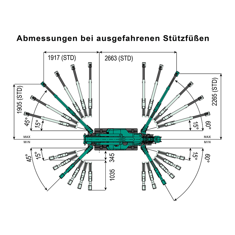 Maks. Wysuwnica: (długość) 4580 mm x (przód) 4530 mm x (tył) 3810 mm |