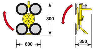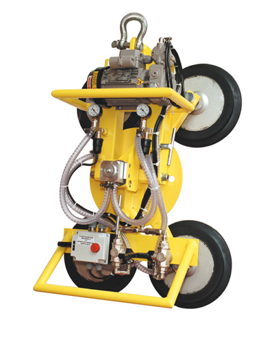 Podnośnik próżniowy do szkła UPI 360D: nadzwyczaj zwrotne urządzenie średnich rozmiarów. Może podnosić szyby o wadze maksymalnej do 360 kg. Manualny ruch obrotowy 360° w fazach 90° oraz manualne uchylanie do pozycji pionowej / poziomej czyni je urządzeniem niezbędnym w fazie obróbki szkła i przy jego przenoszeniu. Instalacja próżniowa z niezależną pompą elektryczną oraz dwoma obwodami bezpieczeństwa. Alarm optyczny sygnalizujący awarie.