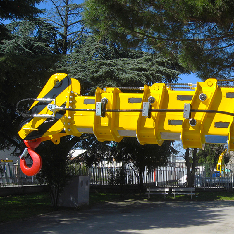 4 następujące po sobie odcinki teleskopowe: 1 odcinek nieruchomy i 3 odcinki hydrauliczne, po bokach regulowane nylonowe płyty zapobiegające zużyciu Sterowanie wysięgnikiem: Rozdzielacz proporcjonalny sterowany dżojstikiem, motopompa 20 kW / 96 V (motopompa serwisowa) |